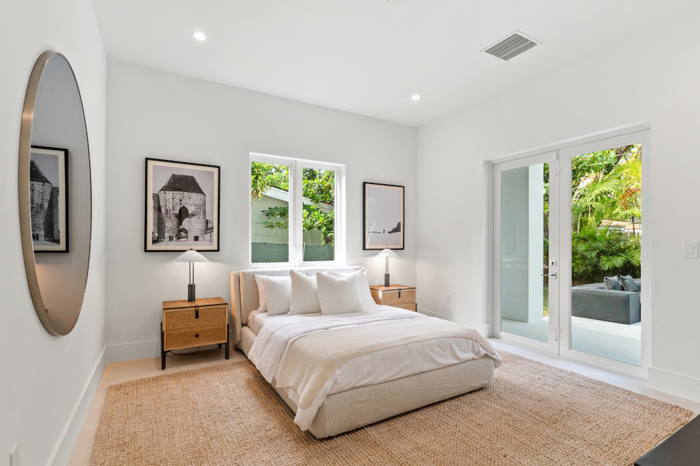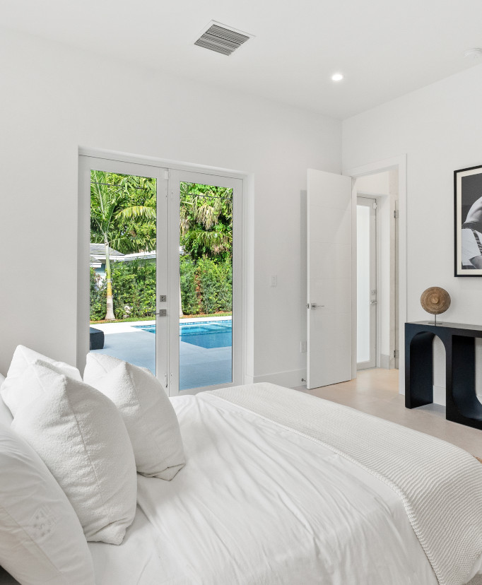 - Master bath with stylish tub, frameless glass shower, dual vanities, and large mirrors